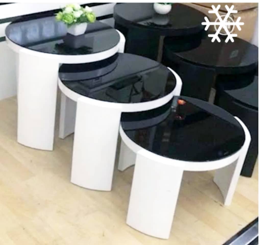 Modern light luxury stainless steel 3 piece toughened glass tea table