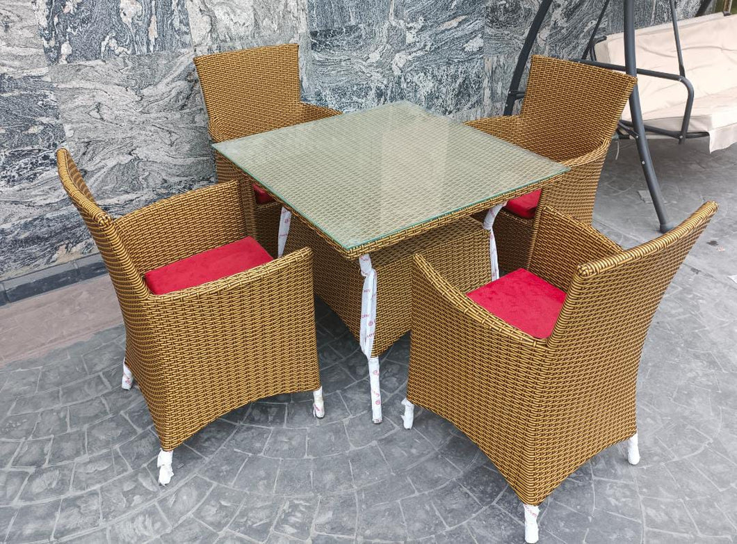 Glass table Outdoor set with 4 Rattan chiars