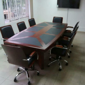 this 8-10 seater padded top conference table is however easy to assemble and maintain. the chairs are not included but you can order for them separately.